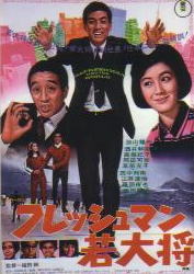 良きマンネリズムもあって、7年間(11本)の長きにわたった「大学編」に続き、若大将のサラリーマン生活を描く「社会人編」の第一作。雄一は社会人1年生となり、親友の江口は妹の照子と晴れて結婚。大学を中退あいた青大将は父親の会社の副社長となって登場し、ライバル関係は社会人になっても持ち越されるまた、マドンナが澄子役の星由里子から節子役酒井和歌子に交替するなど、様々な面で心機一転。以下シリーズはこの基本設定にそって進むことに。邦画全体の斜陽を反映してさしものシリーズにも陰りが見え始めた時期だが、大森幹彦と安武龍の若いプロデューサー二人を中心にスタッフは様々な試行錯誤を重ねていく。 |