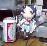 ちょうさんと入れ替わるように、男性2名が座席から出てきた。司令らと面識があるらしく、しばらく会話中。それを、飲みながら眺めてるハチ。思いきって、あの…この方は何者ですか?と聞いてみた。「ああ、ぜくうさんね」何ィィィィ?!!!!!…って事は、何かい?ガンパレアンソロジー界の最高クラスが目の前に御光臨ってか?!で、ぜくう氏の御尊顔。自画像とは、かなりイメージが違うナリ。特徴的な唇が僅かに自画像のイメージを踏襲してるぐらいで、ストリートに放り込んでも違和感ナッシングの優男って所。