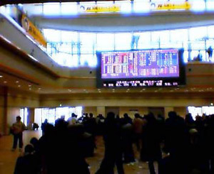 スタンドの中に入ってからも驚いた。入って直ぐ目に入ったのが、巨大なオッズ板。オッズ板のある場所は、丁度、吹き抜けホールになっていて、競艇オヤジらがぐるりとオッズ板を取り囲んでいた。