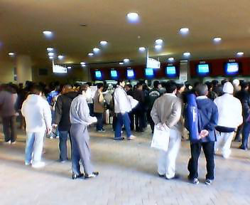 抽選が終わった所で、行列は一旦解散。開店1時間前になって、客が改めて並ぶ。言うまでも無く、整理券組が先頭。列は、整理券組よりも券を得られなかった不運な客の列のほうが圧倒的に多い。