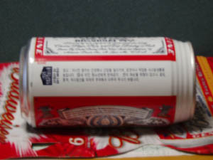 さて、箱の中にはラーメンの他に、エアキャップに包まれた物件が入っていた。開けてみると、韓国のバドワイザーが。
