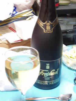 まずは、0時ジャストと同時に、コルドン・ネグロを開ける。で、酒盛りに華を添えるつまみとして、今回はカナッペを準備。前年までは、売れ残り狙いの買出し大会と決め込み、色々と買いまくってたのだが、酔いつぶれて食べ切れない事が多かった。その上、関西遠征を控えた上で給料が乏しいという、突撃貧窮問答歌を歌ってる状態である。
