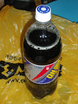 一口飲んで、その奇怪な味に驚くハチ。何ていうか、口いっぱいに病院の臭いがこみ上げてくる。言い方を替えれば、醸造酒のそれではなく、科学の味がする。これには流石のハチも参った。そして、欲張って500mlを買ってしまったのが、悲劇に拍車をかける。
