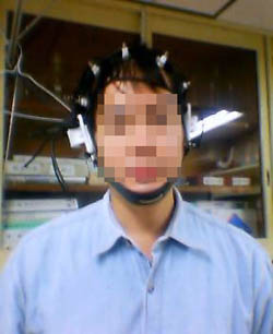 | 今年の10月撮影。 脳波検査の時に着けた頭のヘッドギアが あまりにもアレだったんで、医者先生に撮ってもらった |