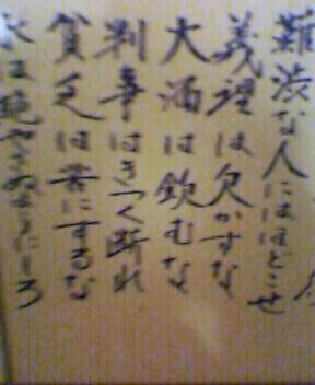 | 今年の8月撮影。Imperatorの飲み会に参加した折、 居酒屋のトイレのタイルに書いてあった。 大酒は飲むなって、大きなお世話じゃ! |