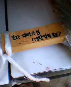 Kと一緒に韓国旅行に行ってたヨースルの人から、韓国土産の小包が届く。