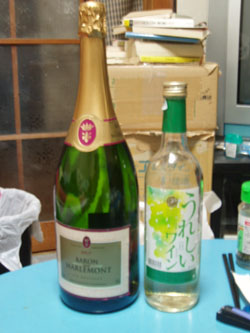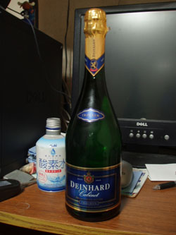 さて、飲んでみよう。ラベルの言うとおり辛口なんだけど、フルーティーで、何と言うか…無難な味。去年のクリスマスのときからずっと置いてたんだが、これはパーティー向けだな。量が量だけに、一人で飲むモノじゃないかな。尤も、ハチは一人で空けたが。