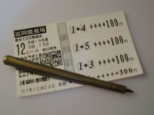 | チキン舟券でも、的中は的中。先の金色スコアペンも一緒に載せとく |