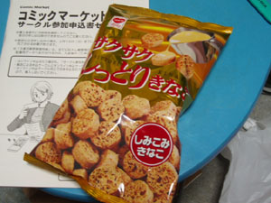 今日の売り上げ自体は、やっぱ例の如くだったが、コミケの時同様、出るたびに買って下さる方が、少数ながら確実に存在するのには、驚いた。本出すたびに、在庫が積もるのに凹みそうになるけど、時々こんな事が起きるんで、同人活動は止められないわな♪