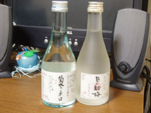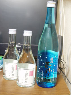 菊水〜は、辛口を銘打ってるだけあって、買ってきたポン酒の中で、一番の辛口。越の〜は、しっかりした味わいが印象的だったかな。