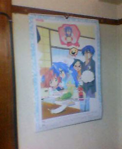 そんなこんなで、三ヶ日が終了。明日からは、原稿との戦いが始まるワケだ。ちなみに、余談だけど、今年のカレンダーは、例年のリラックマじゃなくて、らき☆すた。年末、画材買いにアニメイト行って見かけて、ちょっと良いかな〜って思ってたら、気付いた時には、部屋を飾っていたという。