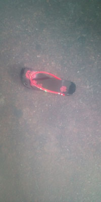 駅のホームに、ポツンと下駄が一足だけ放置してあった。