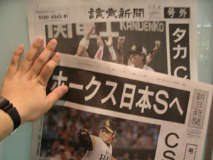 後で知ったんだけど、ヤフードームでは優勝監督インタビューをしてる時には、もう配られてたという。で、例の福岡駅でも、決まって直ぐに号外が配られてたらしい。