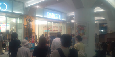 天神に着いてみると、流石にちょっと浮いた空気があったね。というのはコレ。例によって、駅前の天神パルコが、気が早く、直後の優勝セールを始めてたんよね。