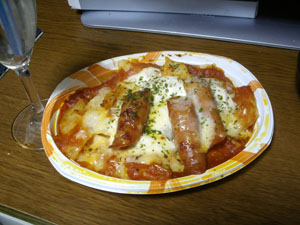 これに合わせたのが、セブンのポテトとソーセージのチーズ焼き。ハチはこれが好きでねぇ♪トマトソースとクリームソースのコンビネーションがたまらない!洋酒全般と合うよ。