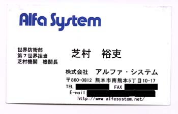 時計の上では1時間ほどだったが、我々にとっては幾年にも感じられるほどの、実に充実した一時を過ごすことが出来た。最後に芝村氏が名刺を配る。ハチも折り曲げて頂いておいた。かくして、オフ会メンバーはアルファの皆様に感謝しつつ、アルファ本社を後にした。