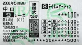 その前に有馬記念。前にも書いたように、オペラオーの本命は揺らがない。っていうか、どうひっくり返しても揺らぎようが無い。