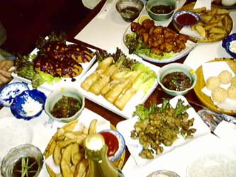 今回の宴会はセットになってるので、会費は抑え目。で、続々と料理が並べられてゆく。