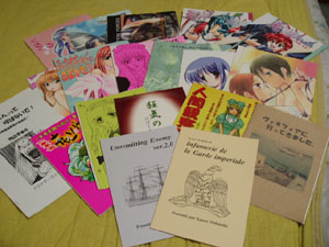 コミケ閉会のお時間。帰りに先駆けて、予め大荷物を整理しておいた。さて、ハチの机の下には、二つの箱が有る。一つは苦労して持ってきた大荷物。もう一つは、新刊が入っていた印刷所の箱。これを整理することに。先の大荷物には、売れ残った既刊と新刊の残り全部を詰め込む。そして、元の新刊が入っていた箱には、戦利品を全て。