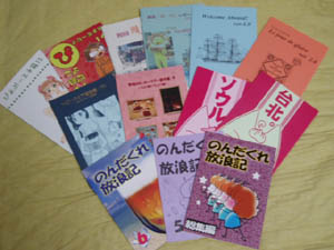 | B5の本。左下は、ねこのしっぽがいつも、コミケ印刷の オマケでくれる、従業員有志が作った本 |