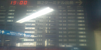 そのつもりで地下鉄に乗り込んだんだが、福岡の交通事情を(逆の意味で)ナメていた。博多駅から空港まで、たった5分ときたもんだ。空港駅に着き、そばにある出発案内掲示板を見てみると、意外や意外。軒並みどの便もスカスカ。