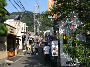 帰りは、さっきの「近道」とは逆の道を下っていく。両脇にズラリと、土産物屋の列。まだ行く所も残ってるし、朝にホテルのバイキングで思いっきり腹に詰め込んだんで、全然、腹が減ってない。そんなワケで、土産物屋も休憩処もシカトして、先を急ぐ事に。