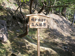 | 展望所からの銀閣 | 山道一帯に無数に立ってた、ツッコミどころ満載の看板 |