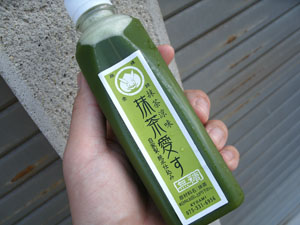 全然腹は減ってないけど、折角京都に来たんだから、何か京っぽいのを口にしたい。でも、帰る時間をそろそろ考えないといけないな…と思ってた所に、ふとハチの目に入ったのは『抹茶愛す(京阿彌)』とかいう、ペットボトル入りの冷やし抹茶。微糖と無糖の2種類あって、ハチは無糖を買う。賞味期限が当日のみって所に、期待が持てる。さっそく飲んでみよう。んぐんぐんぐ…