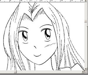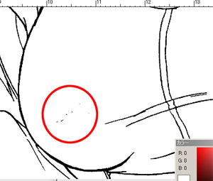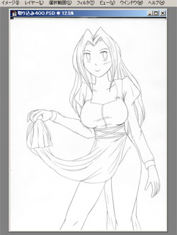 このファイルは、漫画原稿用紙に丸ペンで描いた線画を、グレースケールで400dpiにて取り込んたモノ。