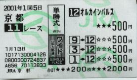 しか〜し、最終レース。「♪オケラをも越えるマーチを歌おう!タテ目をも越えるマーチを歌おう!」冗談半分に買った高配当幻想サンライズマーチがズガン!と来て単勝900円。収支が一気にプラスになった!