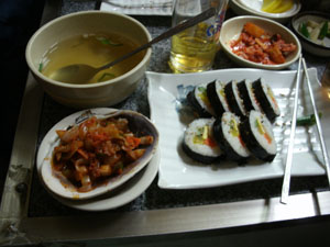そうと決まったら、まずはみんなで腹ごしらえ。ソウル駅内の食堂で、(名前は知らないが)肉と野菜とキムチのビビンバを食べた。石焼ではなかったが、グレイトに美味。