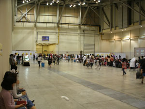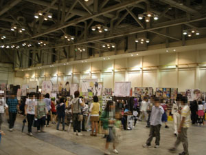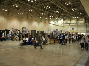 少しは、イメージが分かってもらえたかな?1000SP級の会場――福岡で言うとマンリンメッセ、大阪で言うとインテックスの1個館分――の広さの会場で、強引に100SP(韓国コミックワールドの1SPは、日本の2SPに匹敵するので、厳密には200SP)のイベントをやるような感じ。人口密度の低さは、Cシティヤフードームを遥かに超越する。