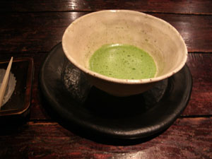 入ってみると、さっきまでの釜山のゴチャゴチャした空気とはガラリと変わって、落ち着いた雰囲気の、非常に良い店だった。まさに釜山の雑踏に輝くオアシスだわな。先客が居たので、店内の写真は止めておいた。関連リンクに店内が載ってるんで、それを参考にしてもらえれば、と思う。まずは、野生茶で作ったという抹茶を注文してみた。