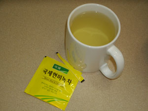 お茶を飲みつつ、テレビを見る。前の韓国旅行の時にも話したけど、韓国のコーヒーの不味さは、悲惨を通り越して芸術の領域に達している。飲めた飲み物といえば、ホテルで置いてあった、このティーバッグのお茶。粟を煎ったか何かして玄米茶風になっていて、結構、美味しかった。これなら、雪歩にも勧められる。