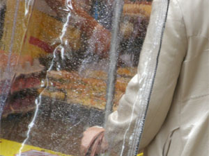 が、出発5分後に、バッグに挿してあった筈の折りたたみ傘が無くなってるのに気がついた。現地では22・23日雨が降る予報なので、コレが無いとちょっとマズい。落としたか?それとも忘れたか?来た道を引き返しつつ、更に家を探したが無い。結局、母上から借り受けることになった。