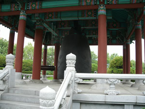 | 公園中央の広間にあった鐘 | 拡大図。かなり巨大なんだが、分かり難くて残念 |