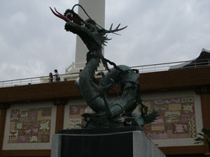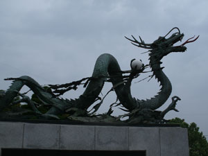 | タワーのある建物の少し前にあった龍の像 | 正面から。指が4本なのに注目 |