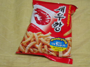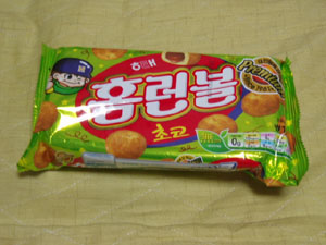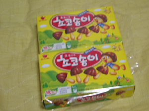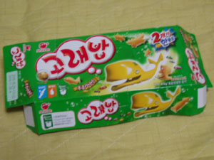 では最後に、土産に買ってきた、韓国のパチモンお菓子を。