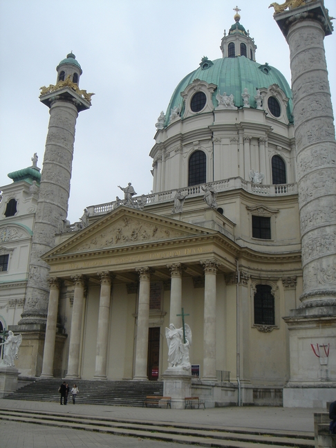 横切ってカールス広場に向かいます。ここにはマーラーとアルマが結婚式を挙げたカール教会があります。非常に大きく
