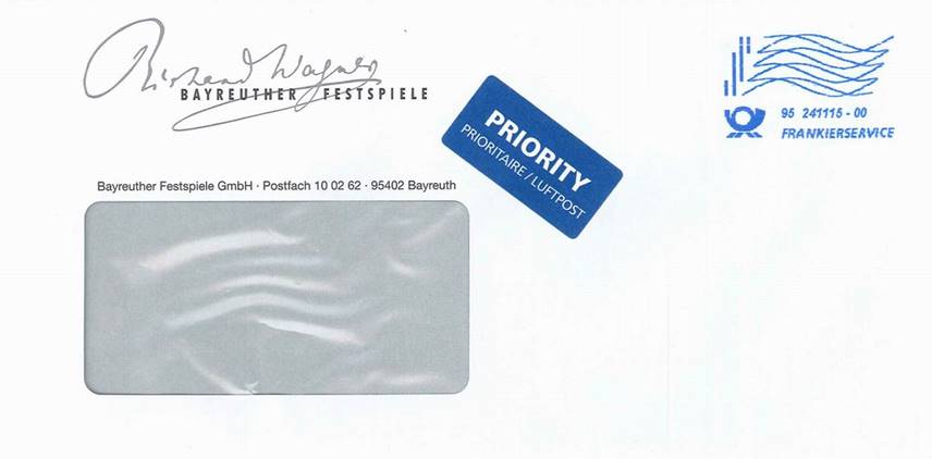 ってきたら、なんとバイロイトから郵便が届いているではありませんか!それもなんとなくプレミア