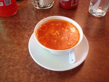ワーグナー通りにある「BONSAI」という店で焼きそばと北京スープとい