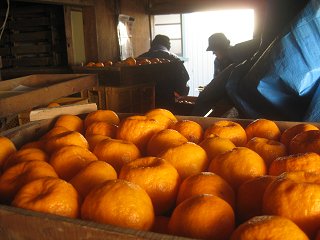 業務輻輳で、今月はここでしか出来ない休日出勤の10日。半日で終わりそうなペースだったが、やり出すと色々欲が出てきて、結局8時から始めて15時半上がりだった。 世の中3連休と言うのに、関係の皆さんには誠に申し訳ない。おかげ様で無事所期の目的を果たすことが出来た。衛星電話用の20D同軸ケーブルの引き回しが仕事だったが、重く可とう範囲が狭く、限られたスペースでの取り扱いは大変だった。おまけに、コネクタ処理済みの60m物を支給されたが、25m程が余る状況に一同苦笑。 11日午前は親父の四十九日法要の案内文を作成し、親戚や隣組を駆け回る。そして午後、今年初の太田ポンカンの撰果。今年は貯蔵場所を変えたので酸味の状況が心配だったが、全体に早熟のためまずまずの味。12日も後拾いの撰果を行い、午後初出荷となった。 写真は貯蔵庫南部屋で、外光の下で撰果を行うカミサンと姉。手前は今回の出荷条件(2L〜4L)から落ちた太田ポンカンだが中々の出来。一体何時休んでいるのと?疑問の声が聞かれそうな生活が続いている。オンマウスはこのところ静かな工房。 今年も健康に留意し、Take it easy!で行きたい。 |
