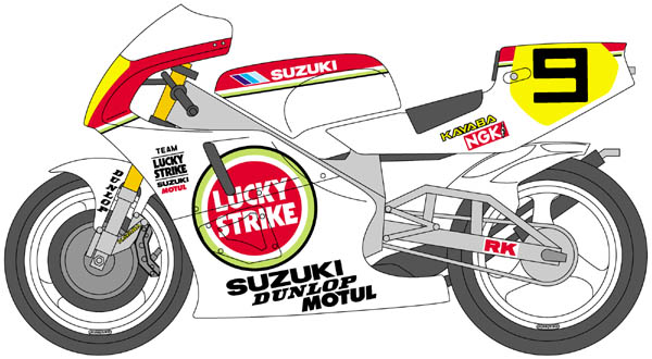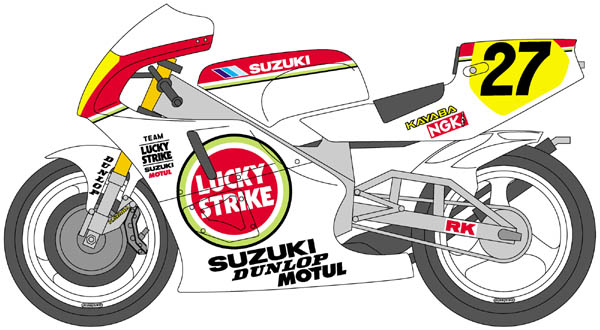 SUZUKI RGV500 1991 Team Lucky Strike SUZUKI #9 Kevin Magee #27 Niall Mackenzie #34 Kevin Schwantz |