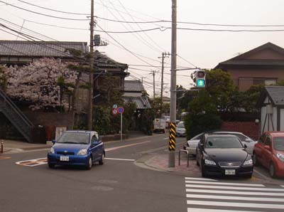 | 葉山マリーナの隣りの公園の桜も満開でした。 | 葉山マリーナを出て、県道207号(森戸海岸線)を逗子方面に行くと、すぐに日影茶屋があります。左が日本料理、右が和菓子舗。 |
