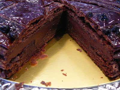 | 今までのチョコレートのガレット・デ・ロワは、焼き上げた後、横2つにスライスしてガナッシュをサンドしてありました。 | |