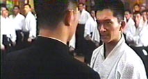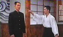 | 1994年製作。 本編開始 17分あたりに登場。 虹口道場に突然訪れた李連杰(リー・リンチェイ)に、「オイ!待て! 外に靴脱いで、出直して来い!」 と怒鳴りつける。(左) 師範の忠告に従わないリンチェイを、「貴様ァ〜」と睨みつける。(中央) 怒ったリンチェイに突きを入れられ、ナイスな演技でリアクション!(右) 補足: 道場生の役で「角刈り」にされる。李連杰(リー・リンチェイ)は寸止め無しなので、演技の必要はなかった。 |