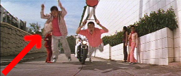 | 1999年製作。 本編開始 49分あたりに登場。 ジャッキーに助けられようとする、阿不(スーチー)に襲いかかる仕込みのチンピラ 田啓文(ティン・カイマン)の吹き替えを担当。 カメラ手前にマットを置いて、その上にグリーンの布をかぶせて、同ポジでマスクを切って 消しているそうです。 情報提供:谷垣健治さん 管理人 テラダ (2007/5/1) |