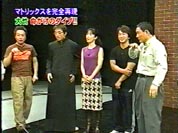 | 「ビートたけしの!こんなはずでは!!」(2003年11月22日 テレビ朝日にて放送)で、 香港映画生まれの「ワイヤーアクション」を、「マトリックス」のワンシーンを題材にして、さまぁ〜ずの お二人に体験してもらい、実際に検証した。「谷垣監督」と紹介される。 管理人 テラダ (2004/4/1) 資料提供: Juneさん(好多謝!) |