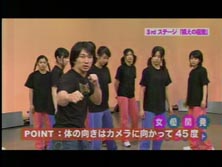 | 2001年4月某日 フジテレビの朝番組「めざましテレビ」に、谷垣さんが女性アナにアクション指導してました。 情報提供: 蓉さん(2001/5/5) |