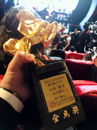 帰りの際、ロビーには、2018年に獲得した金馬奨のトロフィーが展示されていた。